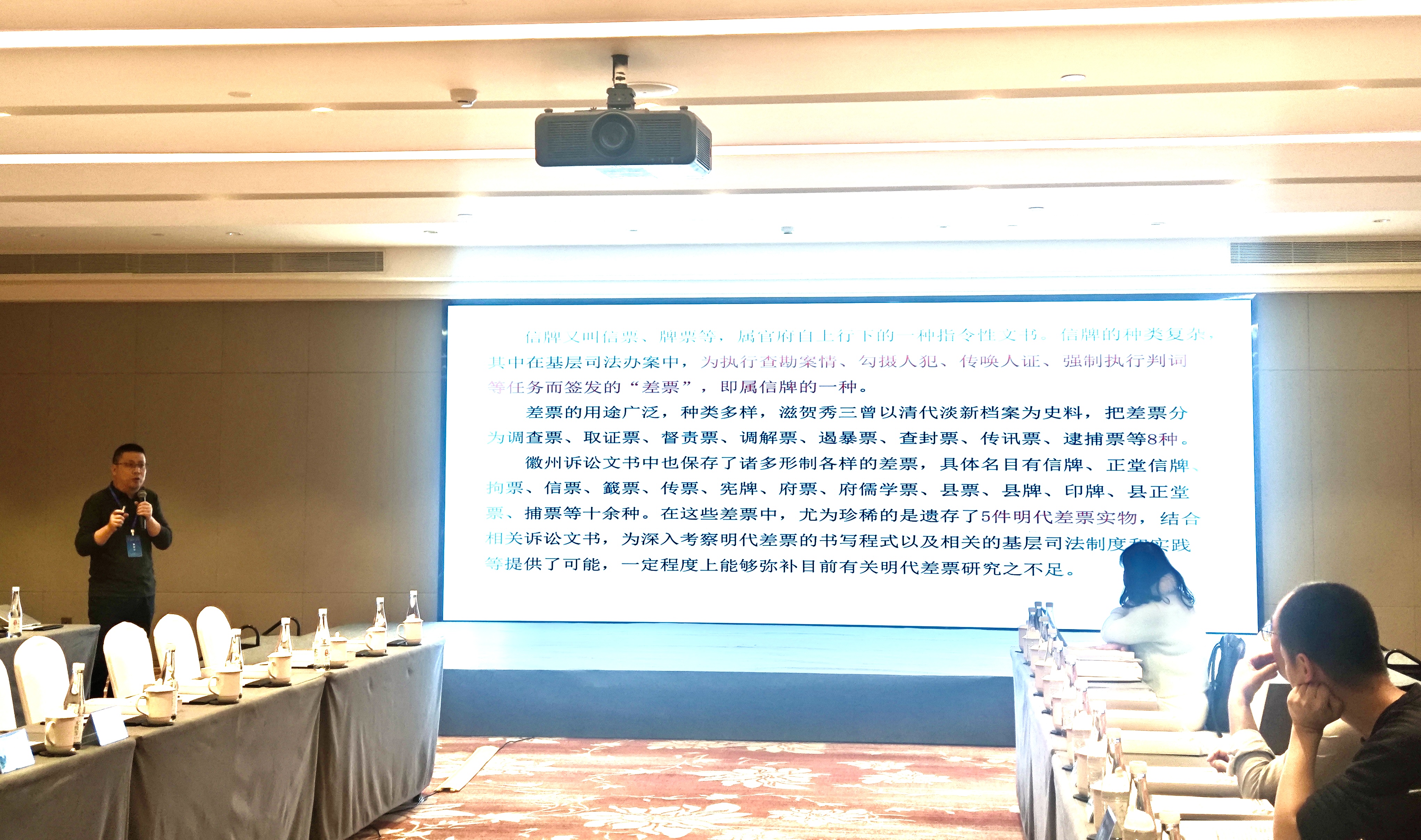 刘道胜教授作为论坛主旨报告嘉宾,与来自国内8所高校和科研单位的代表一道,出席“徽州文化的创造性转化、创新性发展”圆桌论坛。他以《移居、置产、户籍与传统徽州乡里社会》为题,从徽州区域史书写、徽州地域共同体、徽州乡里社会治理、徽州特色等方面作主题报告,分享了徽学研究的最新成果与深刻见解。郑小春教授受邀在“新时代徽学研究的理论实践与新文科视域下的学科交叉融合”的平行主题论坛中,发表了《明代徽州司法办案中的差票》主旨演说,受到与会者一致好评。康健研究员担任了“新安医学的传承创新路径与新时代徽州‘非遗’文化产业发展”平行主题论坛特邀评议人。