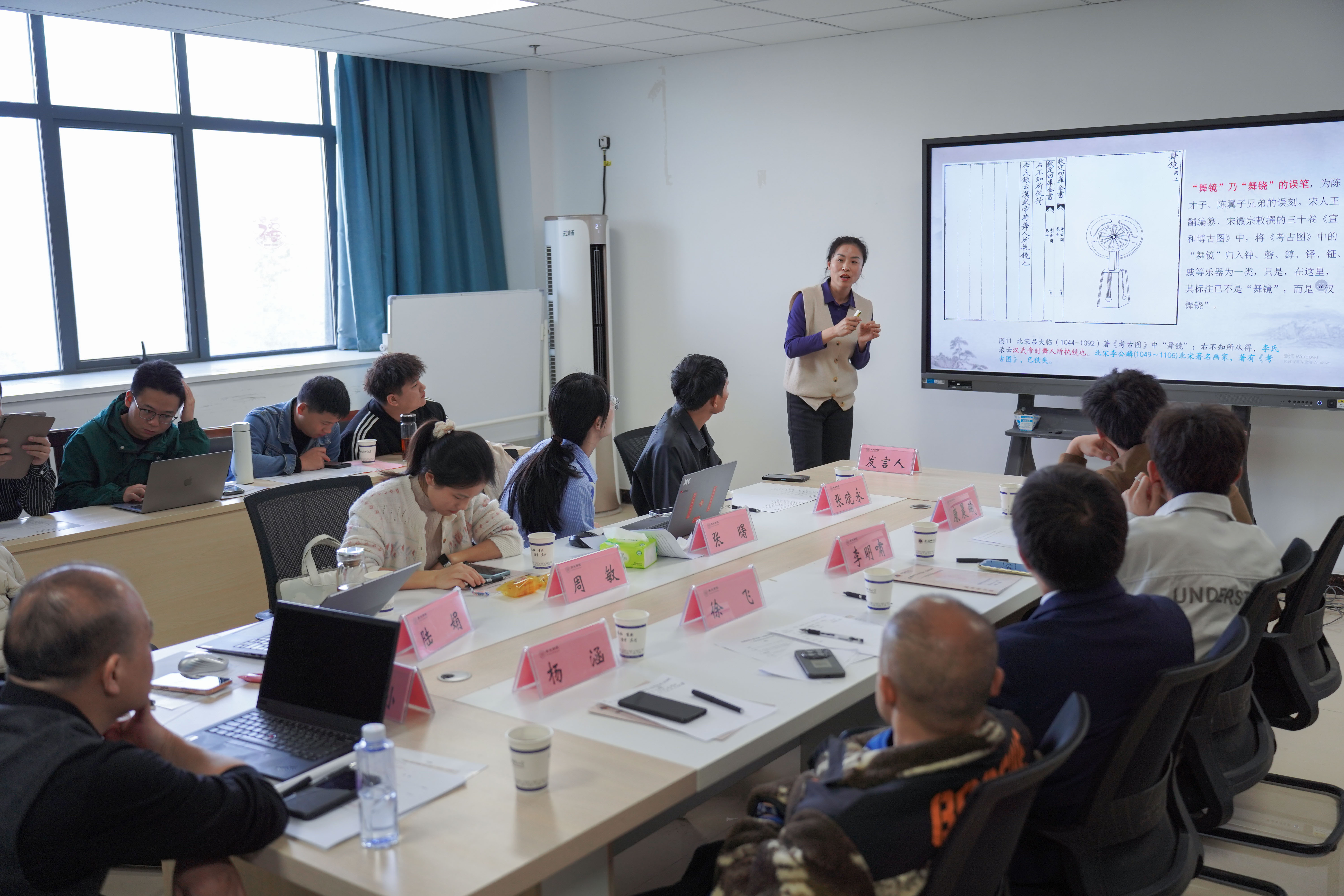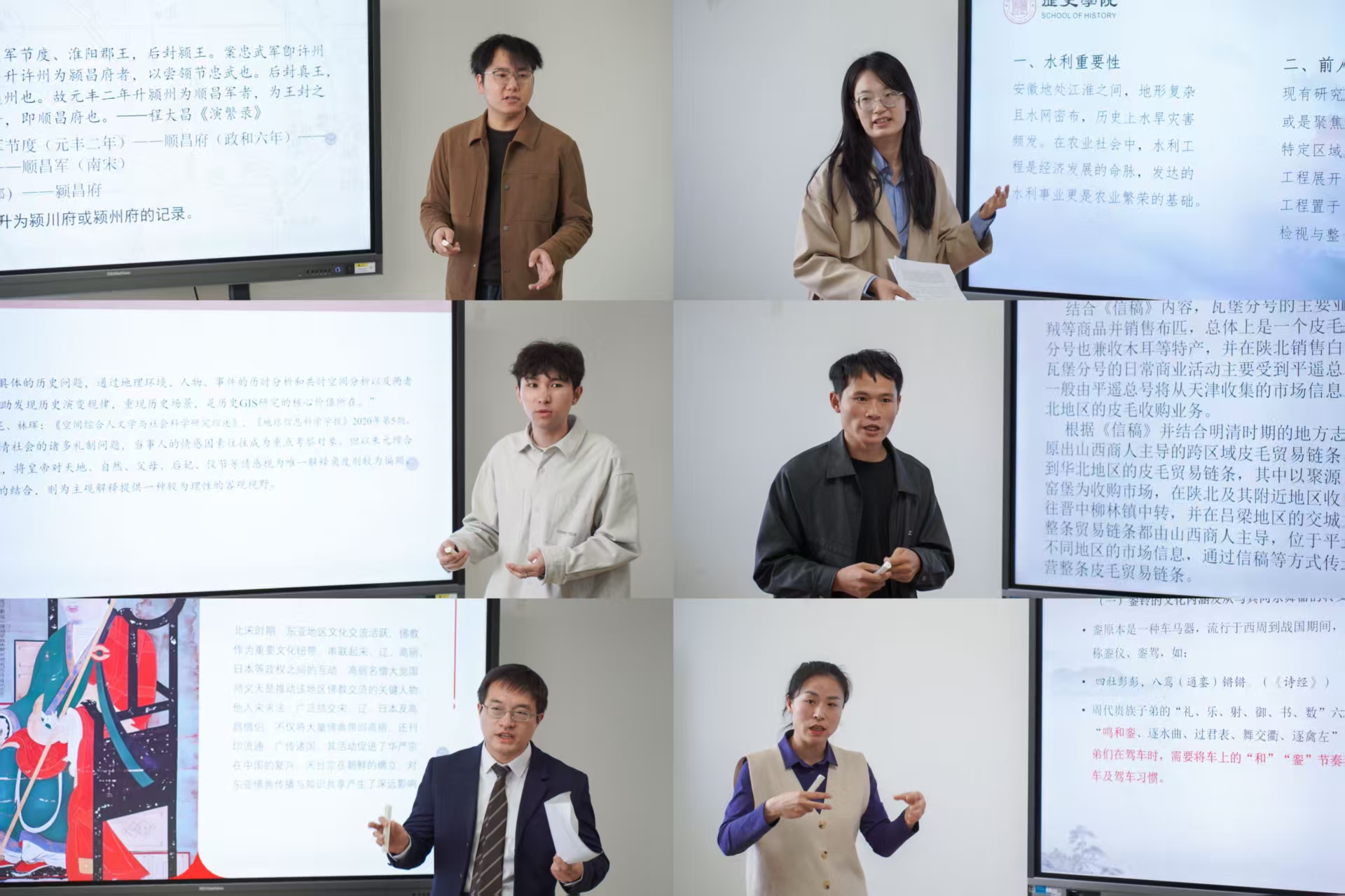 第二组汇报中,张曙《人水协和:安徽水利工程的历史嬗变》一文中,梳理了安徽水利工程从先秦至明清的演变规律,强调人水协和智慧。张晓永则聚焦《清末民初山西商人与西北皮毛贸易研究》,依托商号信稿还原陕北—晋中—天津贸易链条,揭示晋商运作模式。随后,陆娟以《“鞞舞”“镜舞”还是“銮铃舞”?—安徽宿县褚兰“九女坟”汉墓画像石舞蹈研究》为题,考证汉墓画像石中舞人手持圆形道具的属性。第二组发言后,游欢孙点评道,本次沙龙展示了安徽师范大学青年博士生的研究基础,强调青年学子需强化问题意识、立足史料,让区域史、文化史等研究更具深度与创新性。最后陆娟作总结发言,她首先代表学院和全体参会人员感谢游欢孙教授的点评与指导,希望与会同学以此次活动为契机加强学术交流,推动历史研究创新,产生更多高质量成果。