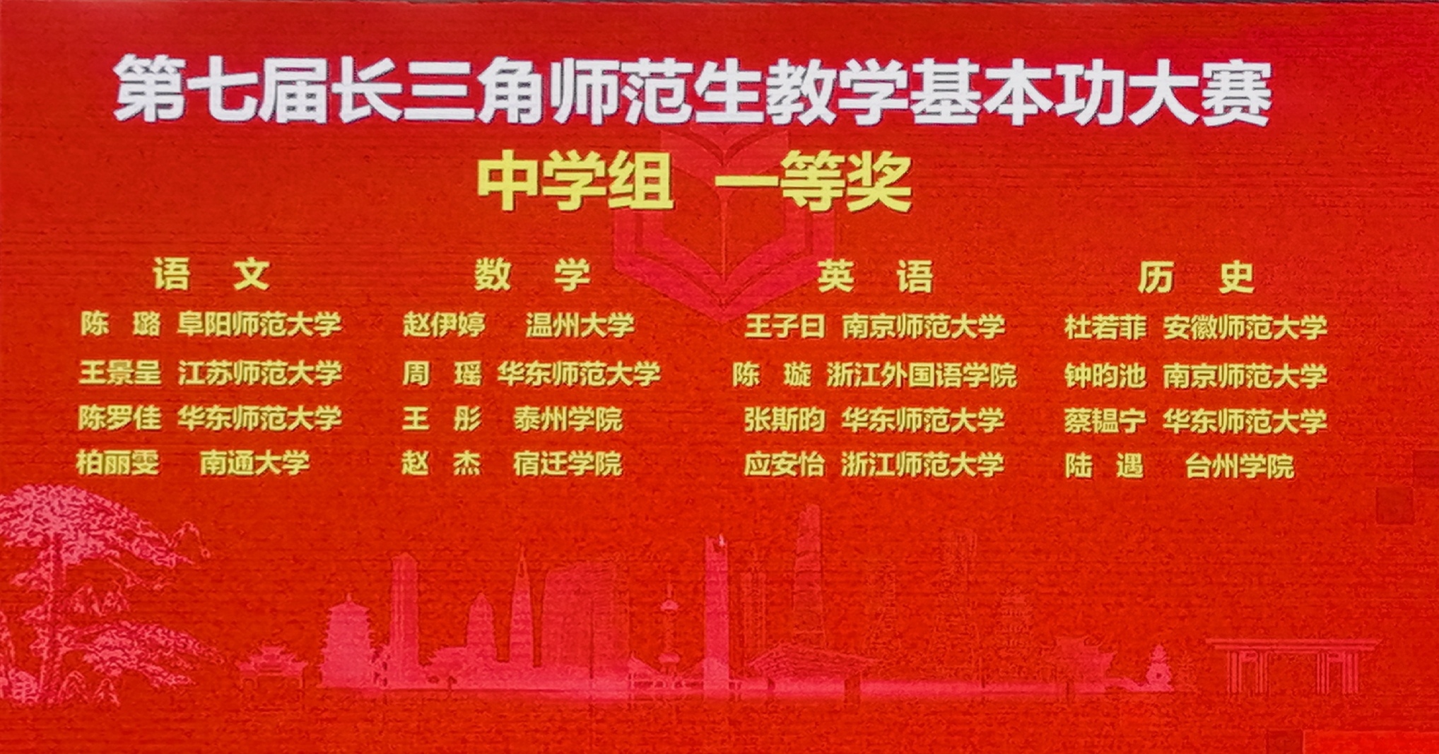11月14日至16日,由安徽省教育厅、上海市教育委员会、浙江省教育厅、江苏省教育厅主办,长三角教师教育联盟协办,安徽师范大学承办的第七届长三角师范生教学基本功大赛在我校花津校区顺利举行。历史学院2023级历史学(师范)专业本科生杜若菲、陈志伟同学分获一等奖和三等奖。