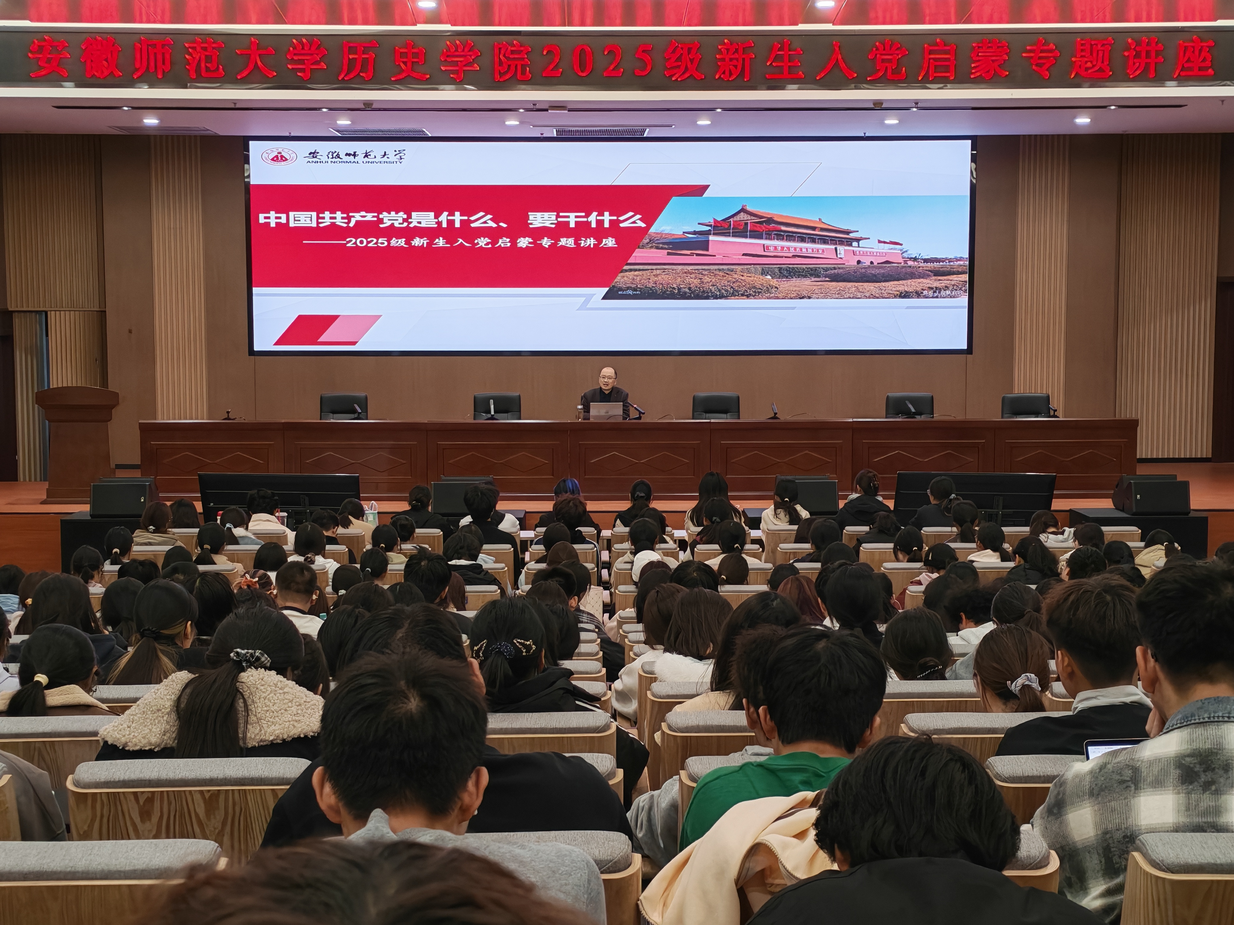 为引导广大新生了解党的基本知识理论,明晰入党程序,端正入党动机,历史学院于12月1日下午在文典楼西三裙楼报告厅开展2025级新生入党启蒙专题讲座。本次讲座由院党委副书记、纪委书记宫超主讲,辅导员韩雪主持,全体2025级本科生参加。