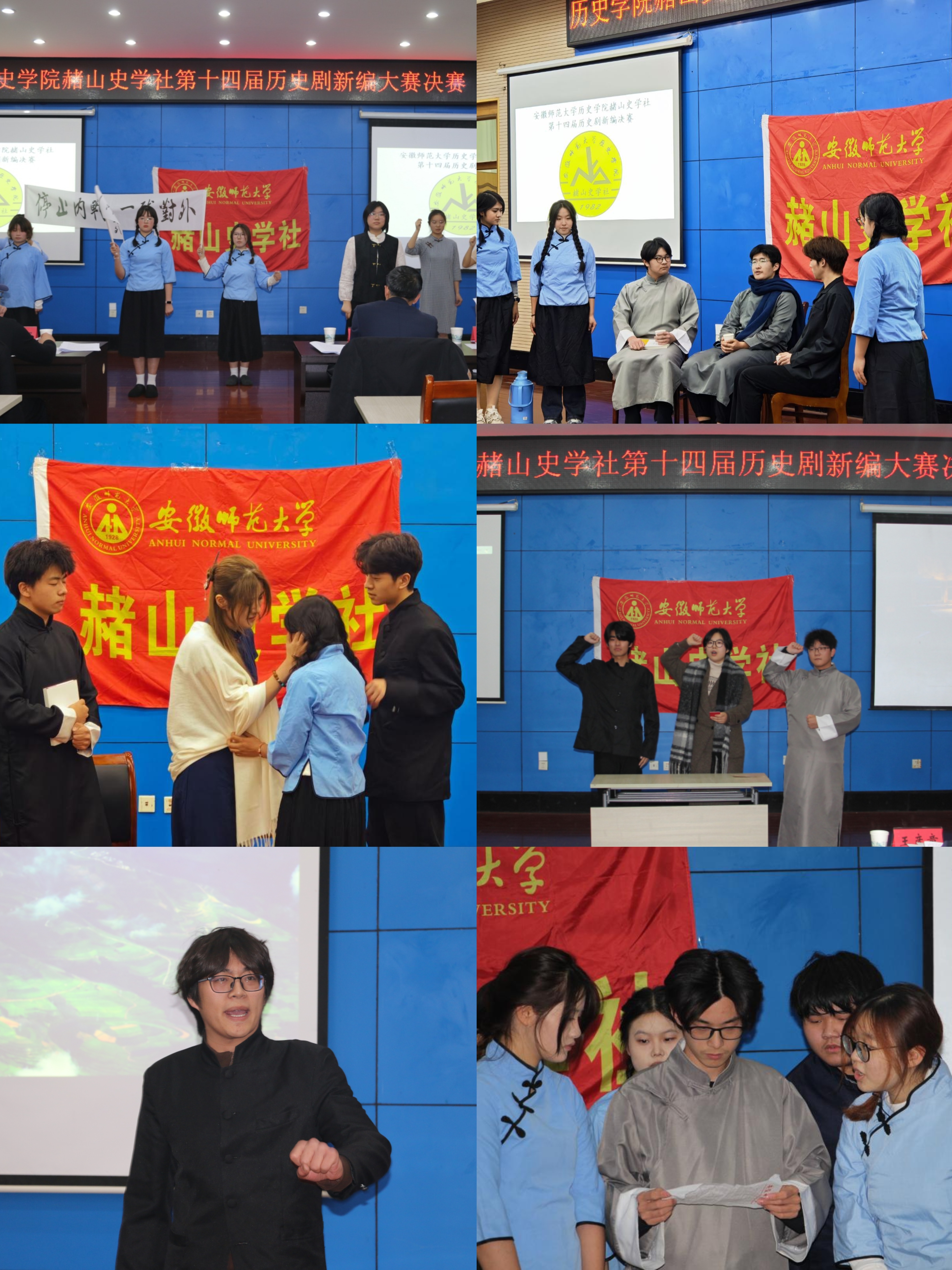 2025年12月8日晚,历史学院第十四届历史剧新编大赛决赛在圆形报告厅举办,学院党委副书记宫超,赭山史学社指导教师王彦章,团委书记郭忠尧,辅导员胡文新、周佳妮,2025级博士研究生吕珺应邀担任评委,学院众多本科生到场观赛,共同见证这场融历史底蕴与青春风采于一体的文化盛宴。