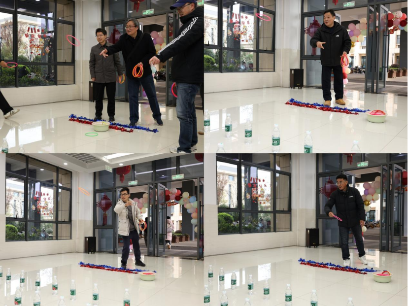 本次游艺会共有6个趣味比赛项目,其中掼蛋比赛自由参与、不设奖项,投掷飞镖、套圈、投壶、打保龄球和夹乒乓球等5个比赛项目则计算成绩,排出相应奖项。在各个比赛场上,老师们各展才能,欢快竞争。套圈区里,老师们凝神瞄准、轻扬手腕,精准套中目标的欢呼声此起彼伏;投壶区前,大家屏气凝神、稳步投矢,在传统民俗体验中感受乐趣;趣味保龄球区,光滑球道上的篮球飞速滚动,矿泉水瓶应声倒地的瞬间总能引发阵阵喝彩;掷飞镖区,参赛者紧盯靶心、果断出镖;夹乒乓球区,老师们手握筷子小心翼翼夹球,在考验耐心与技巧的比拼中相互鼓劲;掼蛋区则氛围热烈,老师们围坐一桌,在脑力与默契的竞技中畅谈交流,其乐融融。