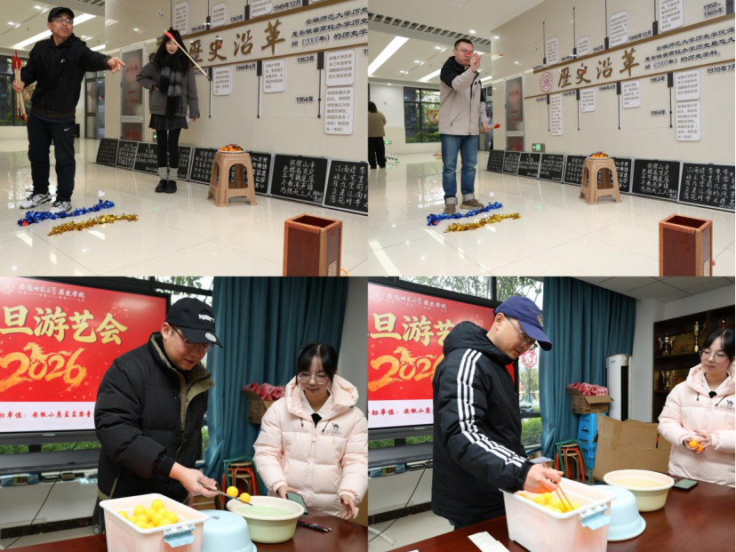 本网讯(历史学院 文/罗宇航 图/蒋静怡 陈湘)为丰富教职工精神文化生活,迎接2026新年,12月31日下午,历史学院在学院楼举办教职工元旦游艺会。此次游艺会由学院分工会策划统筹,研究生会协助开展相关工作。