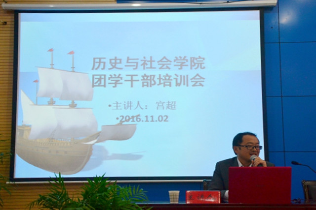 本网讯(院学生会 曹雪瑶 陈健 刘明慧)为进一步加强团学干部自身队伍建设,培养出一批能力强、素质高、有作为、风气优的团学骨干。11月2日下午,学院于圆形报告厅二楼第三报告厅成功举办2016年“历社英才”团学骨干培训班主题讲座。院团委书记宫超和2016级辅导员、学生会指导老师周贤超出席并主讲。全体团学干部、2016级全体班委、2015级全体新班委到场聆听。