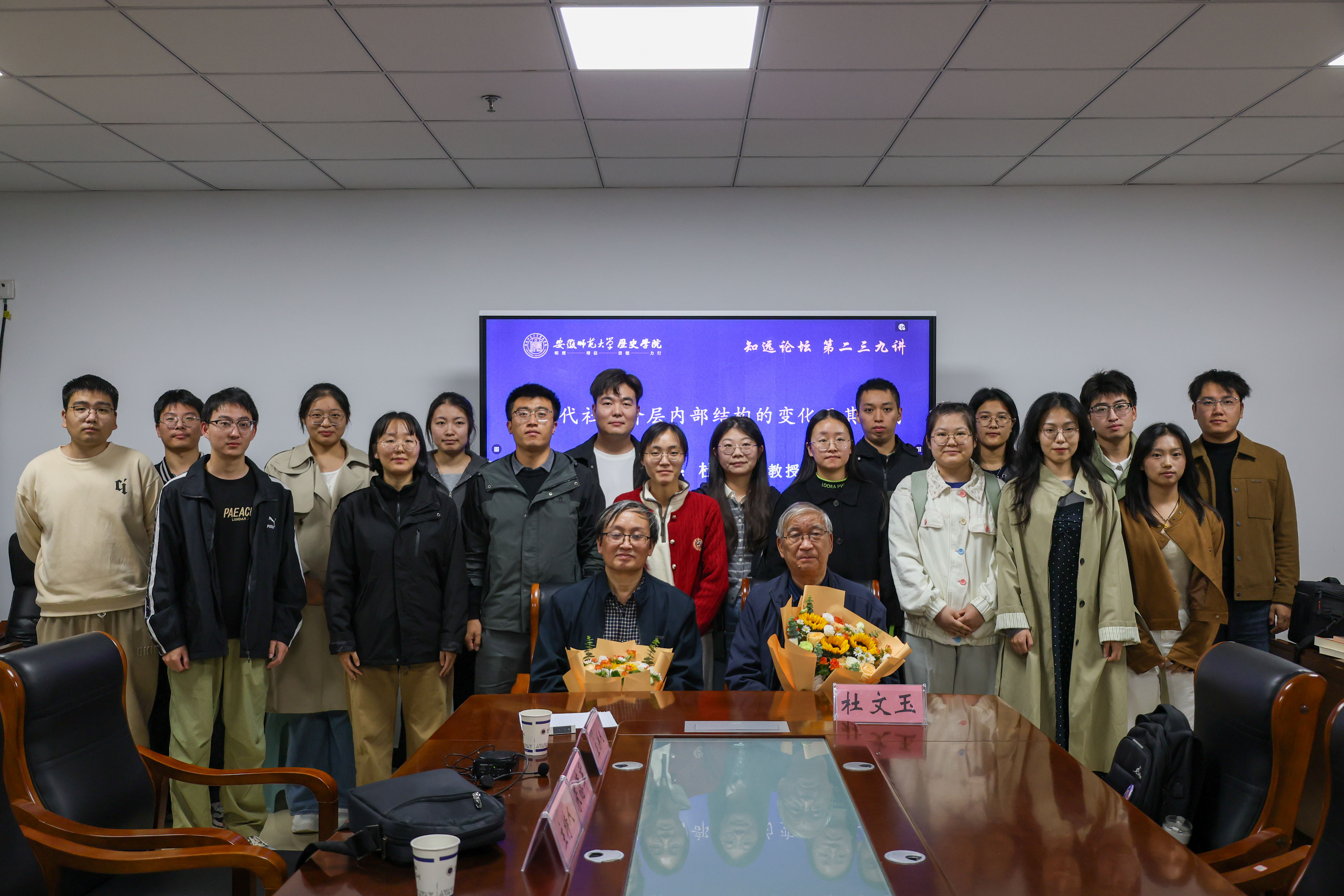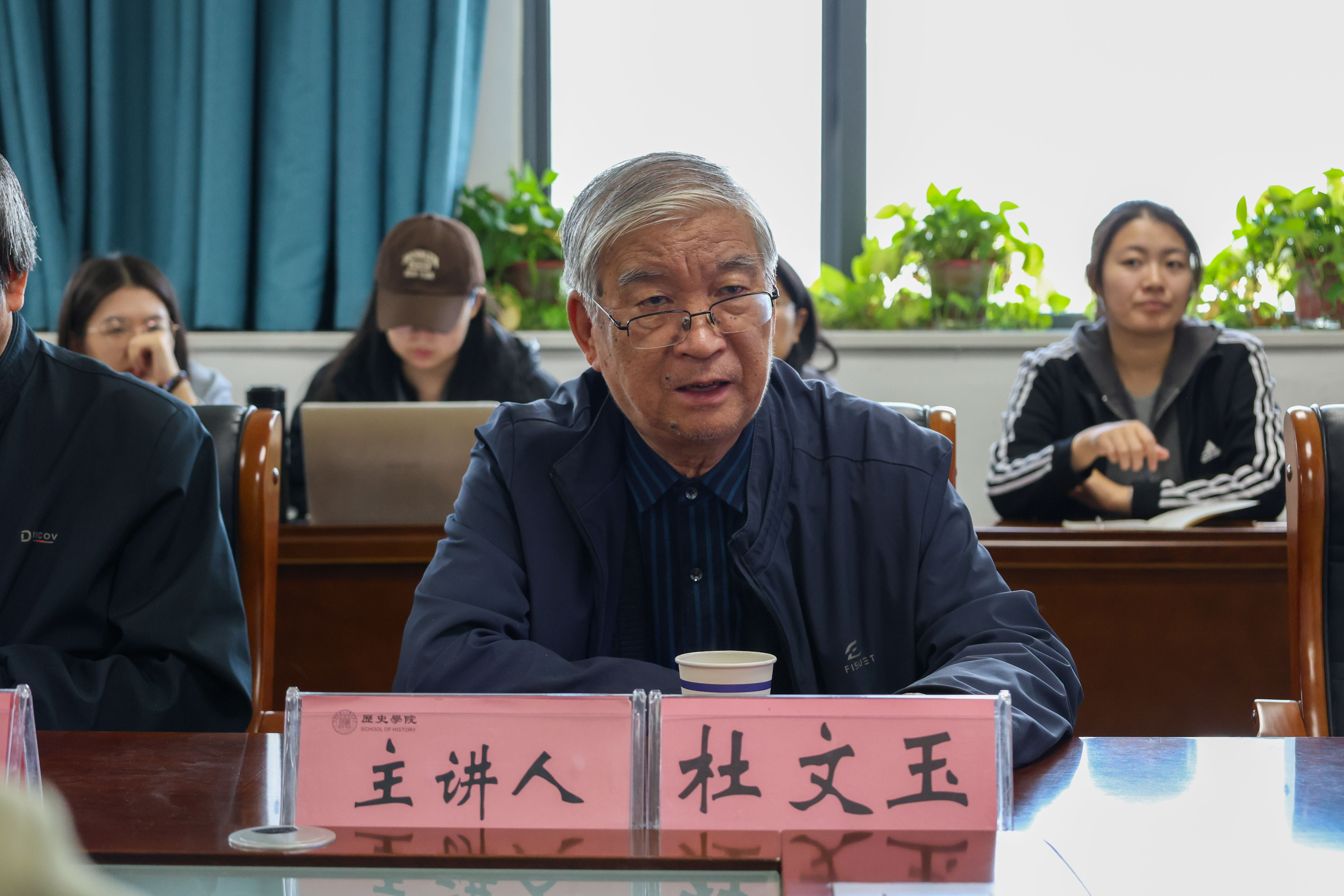 本网讯(历史学院 文/陈睿 图/蒋静怡)2025年10月22日下午,陕西师范大学教授、中国唐史学会名誉会长、《唐史论丛》主编、文化部中国名山名寺名观文化研究委员会高级顾问杜文玉应历史学院邀请,于花津校区文典楼B416会议室作题为“唐五代社会阶层内部结构的变化及其影响”的学术报告。本次讲座由历史学院教授朱德军主持,学院40余名师生到场聆听。