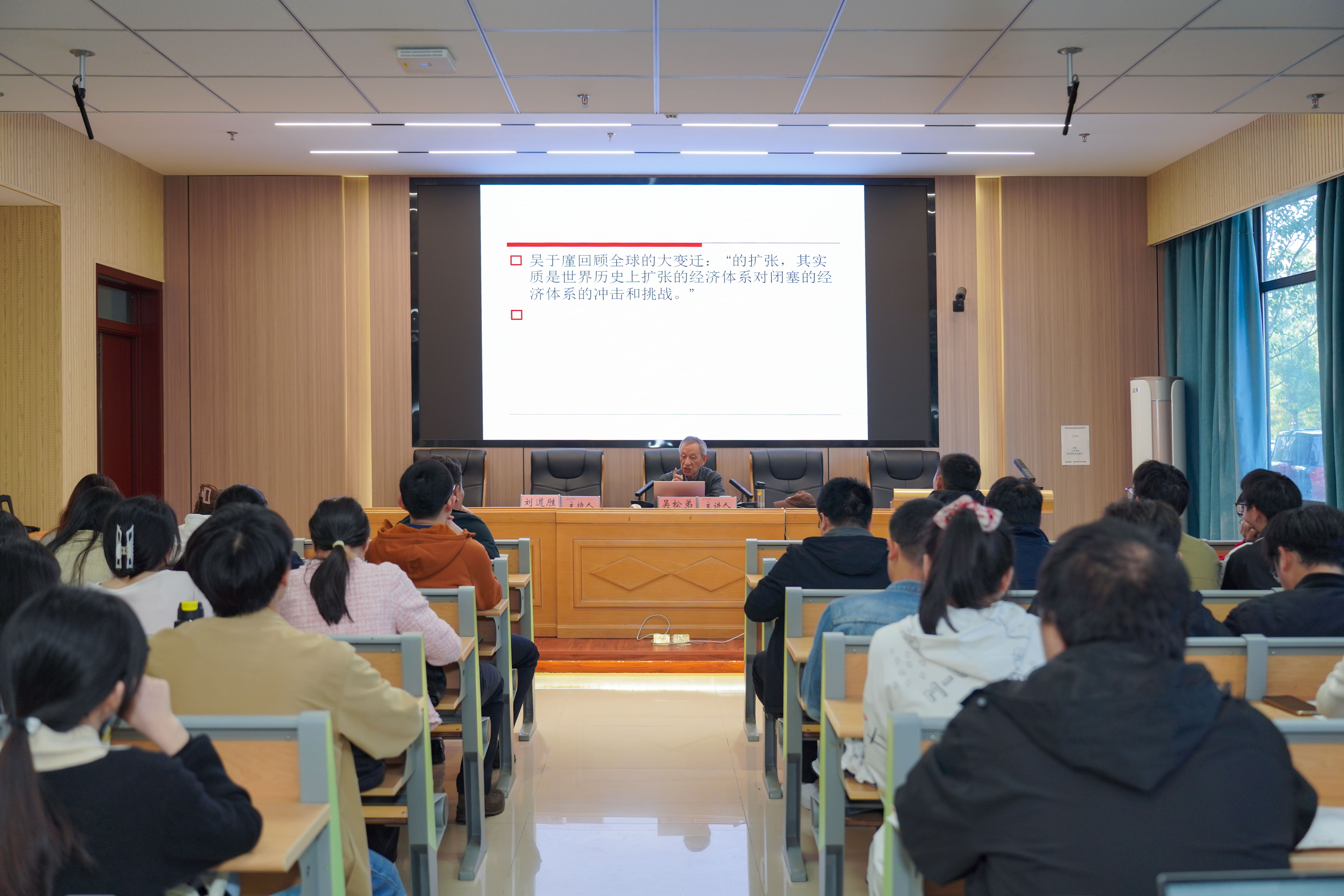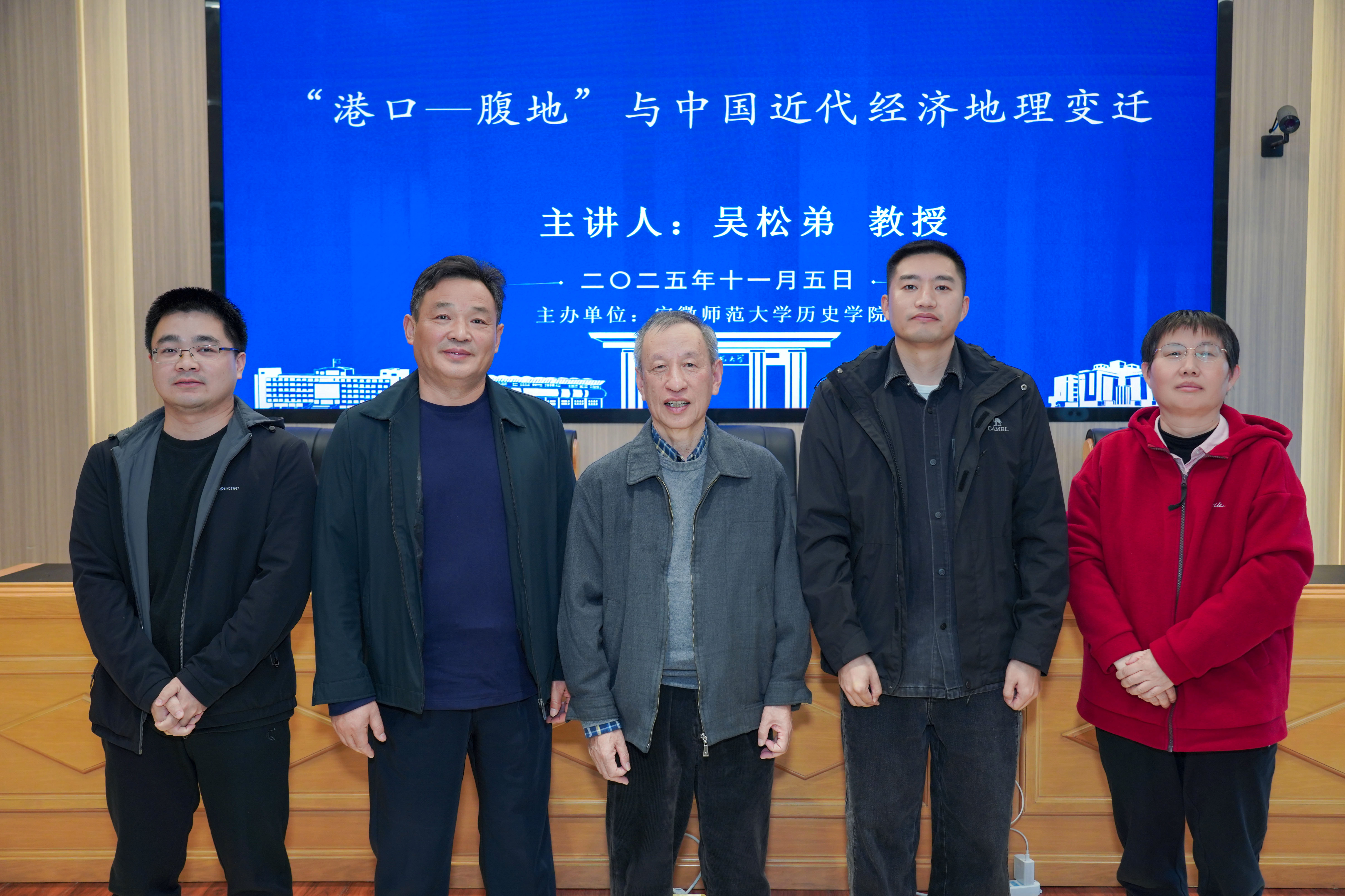 本网讯(历史学院 文/卢正浩 图/罗宇航)2025年11月5日下午,复旦大学特聘教授、中国城市史学会副会长、复旦大学中国海关史与海关文献国际研究中心主任、《历史地理研究》主编吴松弟先生应历史学院邀请,于花津校区文典楼B108报告厅做了题为“‘港口——腹地’与中国近代经济地理的变迁”的学术报告。本次讲座由历史学院院长刘道胜教授主持,学院百余名师生到场聆听。