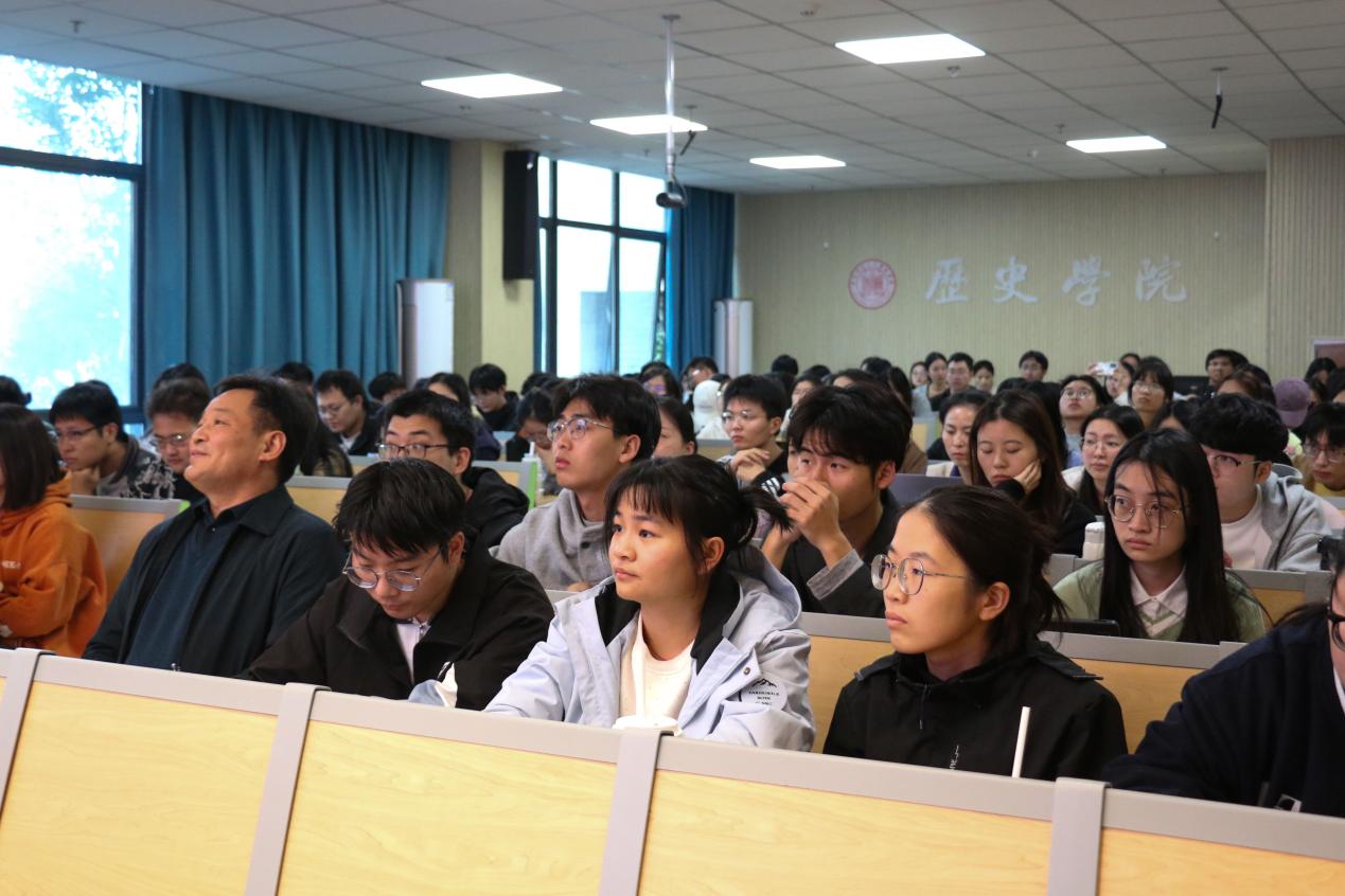 现场互动交流环节,师生围绕移民史研究与祖先记忆追溯的共性等问题展开了讨论。最后,刘道胜教授总结指出,本次报告以移民传说为切入点,串联起家族祖先记忆与区域历史重构、文化认同的史学研究主题。他高度评价文献深度解读与田野考察实践相结合的史学研究方法,并期望历史学院的学生能够掌握“讲故事”的学术表达能力。本次讲座在热烈的掌声中圆满结束。