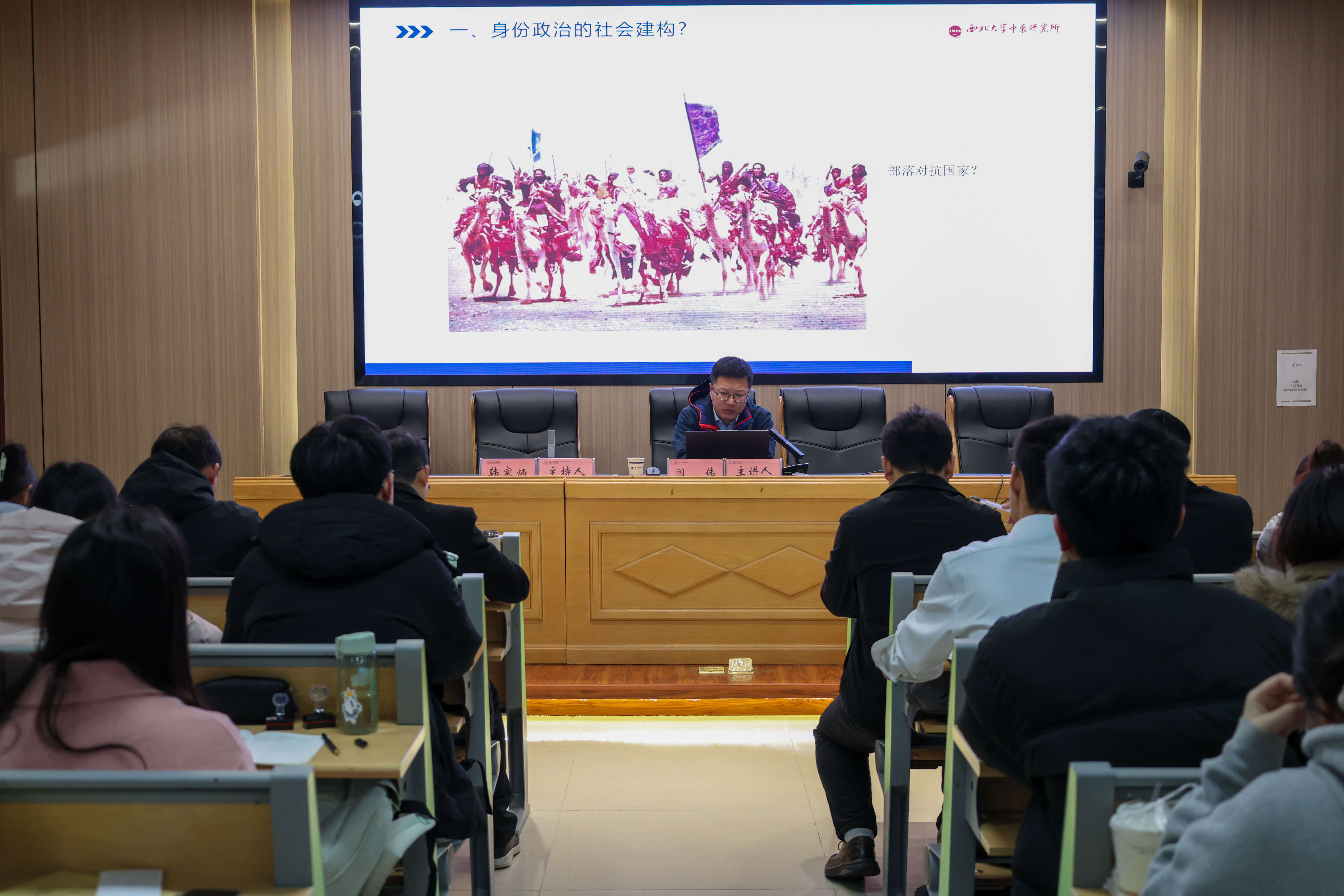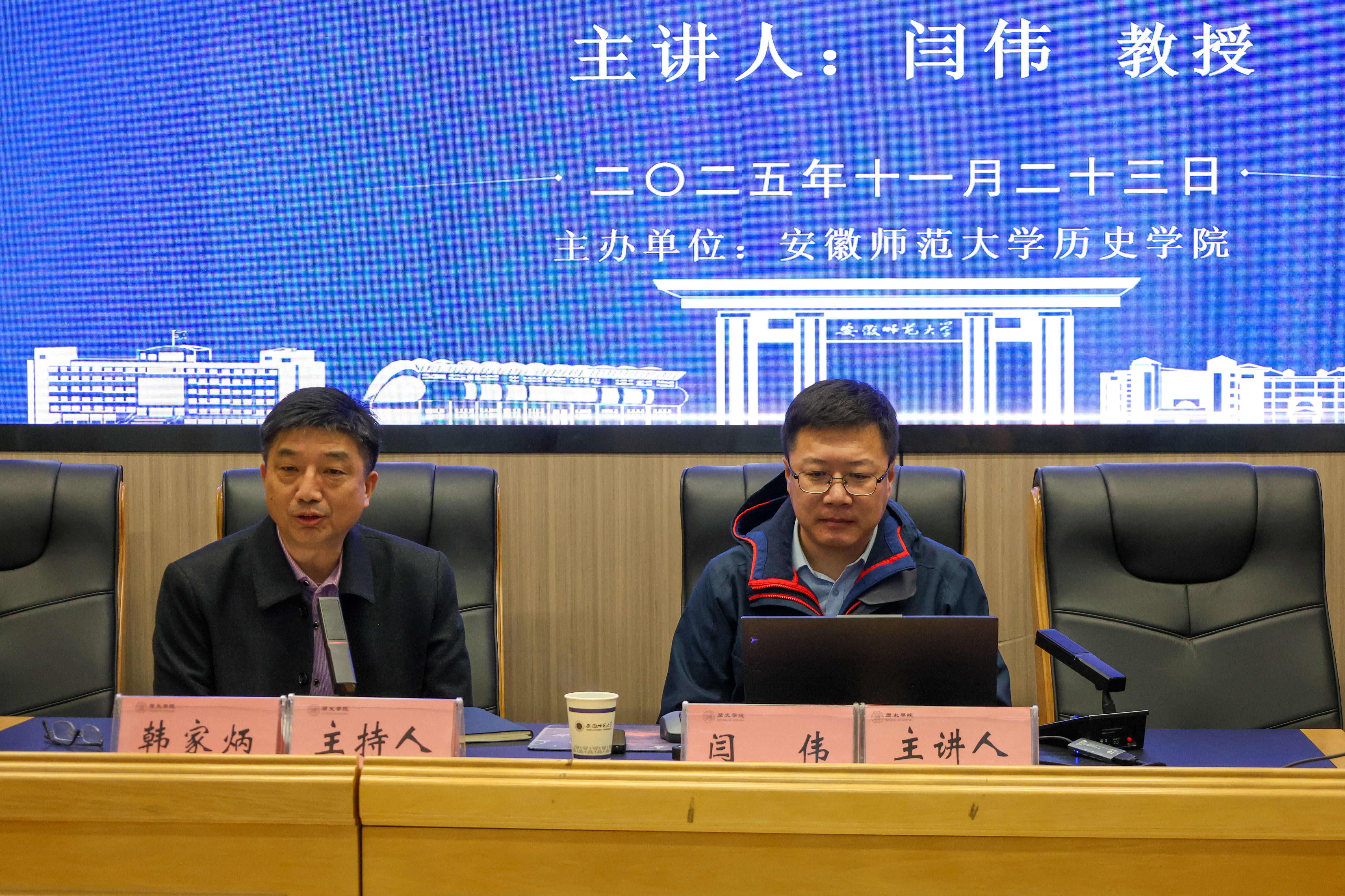 本网讯(历史学院 文/钟欣颖 图/蒋静怡)2025年11月23日上午,我院特邀西北大学闫伟教授莅临传学开讲。本次讲座以《身份政治与中东国家构建的困境》为主题,讲座由安徽师范大学科研部副部长韩家炳教授主持,专业副主任成振海等百余位师生到场聆听。