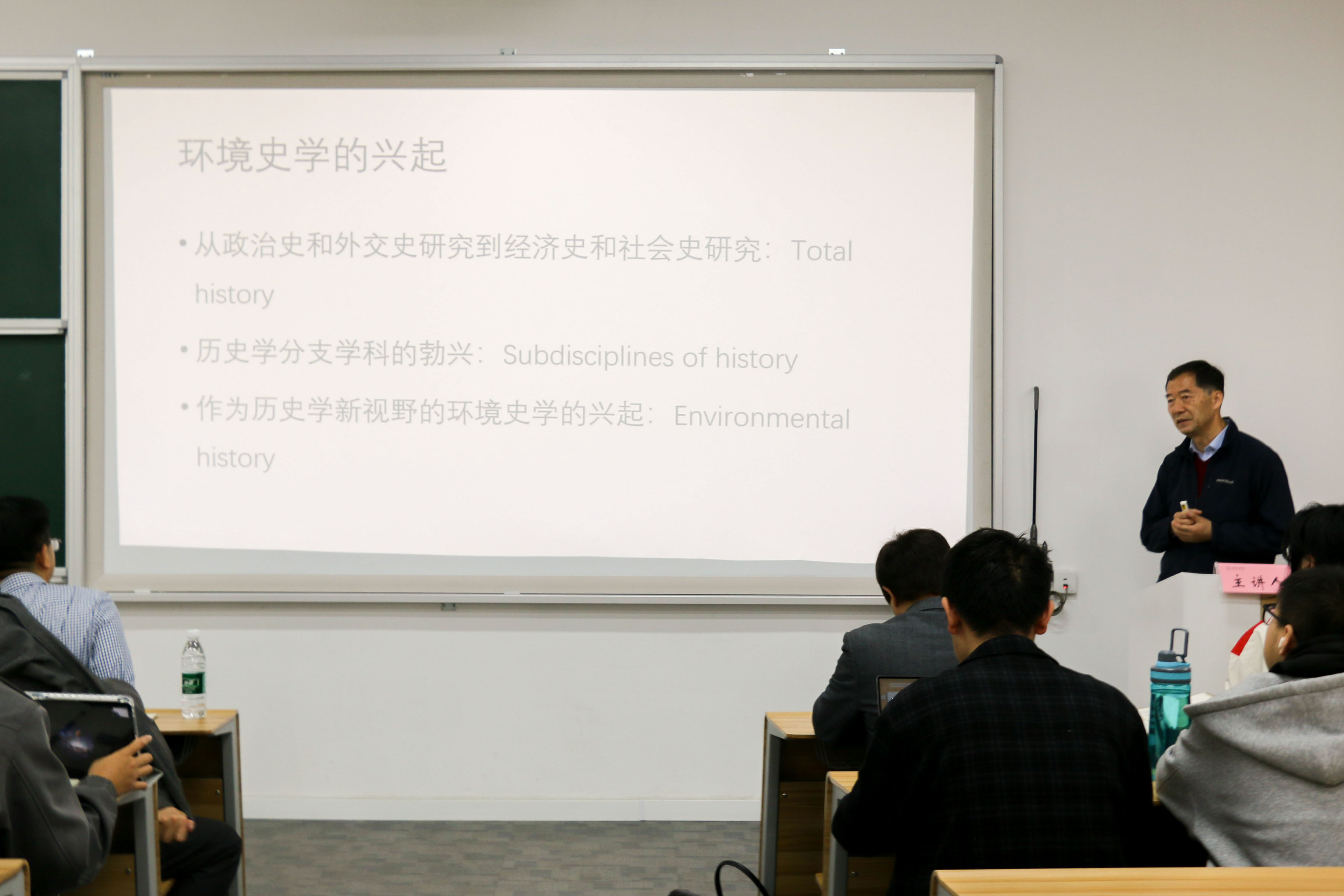 讲座伊始,包茂红教授以环境史学的兴起为切入点介绍了环境史研究的四大主题,并梳理了国际环境史组织联盟(ICEHO)与世界环境史大会(WCEH)的历史与现状,为在场师生分享了该领域的国际发展动态。在环境史的史料运用方面,包茂红教授详细阐释了环境史研究的五大核心史料的内容与特点。