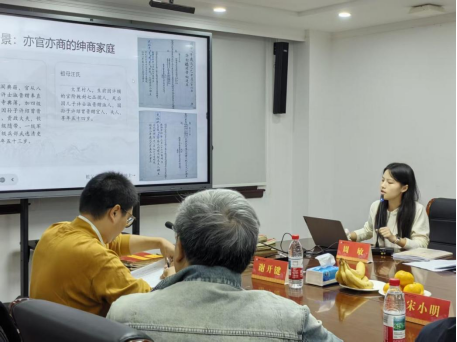 10月19日上午,周敏在第五场专题报告中作了题为“晚清徽州绅商的移柩活动及生活世界研究——以清同治许绍曾《先资政寄庵公营造账》为中心”的发言。她以许绍曾的家世背景和多元身份、移柩祖父母和父母的特点、账簿所反映的观念与生活等几方面为切入点,分析了晚清徽州绅商移柩的过程和开销,以及他们的生活世界。发言结束后,评议人进行了细致的点评。本场报告尾声,现场专家学者就汇报内容各抒己见。