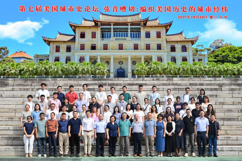 本网讯(历史学院 林润泽)2025年10月17日至19日,“弦音嘈切:编织美国历史的城市经纬”暨第七届美国城市史论坛于厦门大学顺利召开。本次论坛由厦门大学历史与文化遗产学院、美国史研究所、北京大学中国政治学研究中心共同主办,上海师范大学世界史系、上海大学文学院协办。全国70余名专家学者齐聚鹭岛,共赴学术之约,以多元视角一同编织美国历史的城市经纬。
