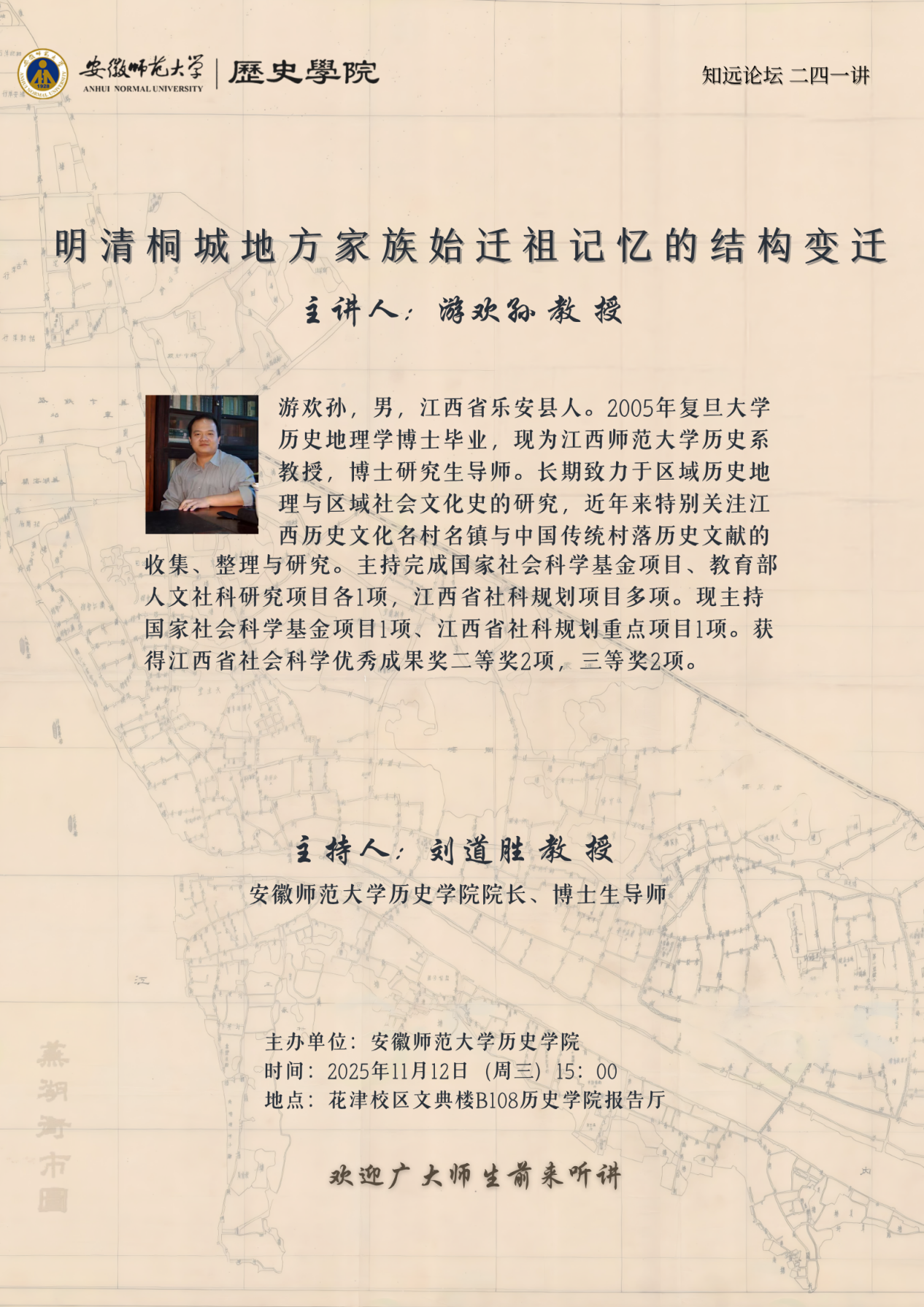 【学术预告】游欢孙:明清桐城地方家族始迁祖记忆的结构变迁