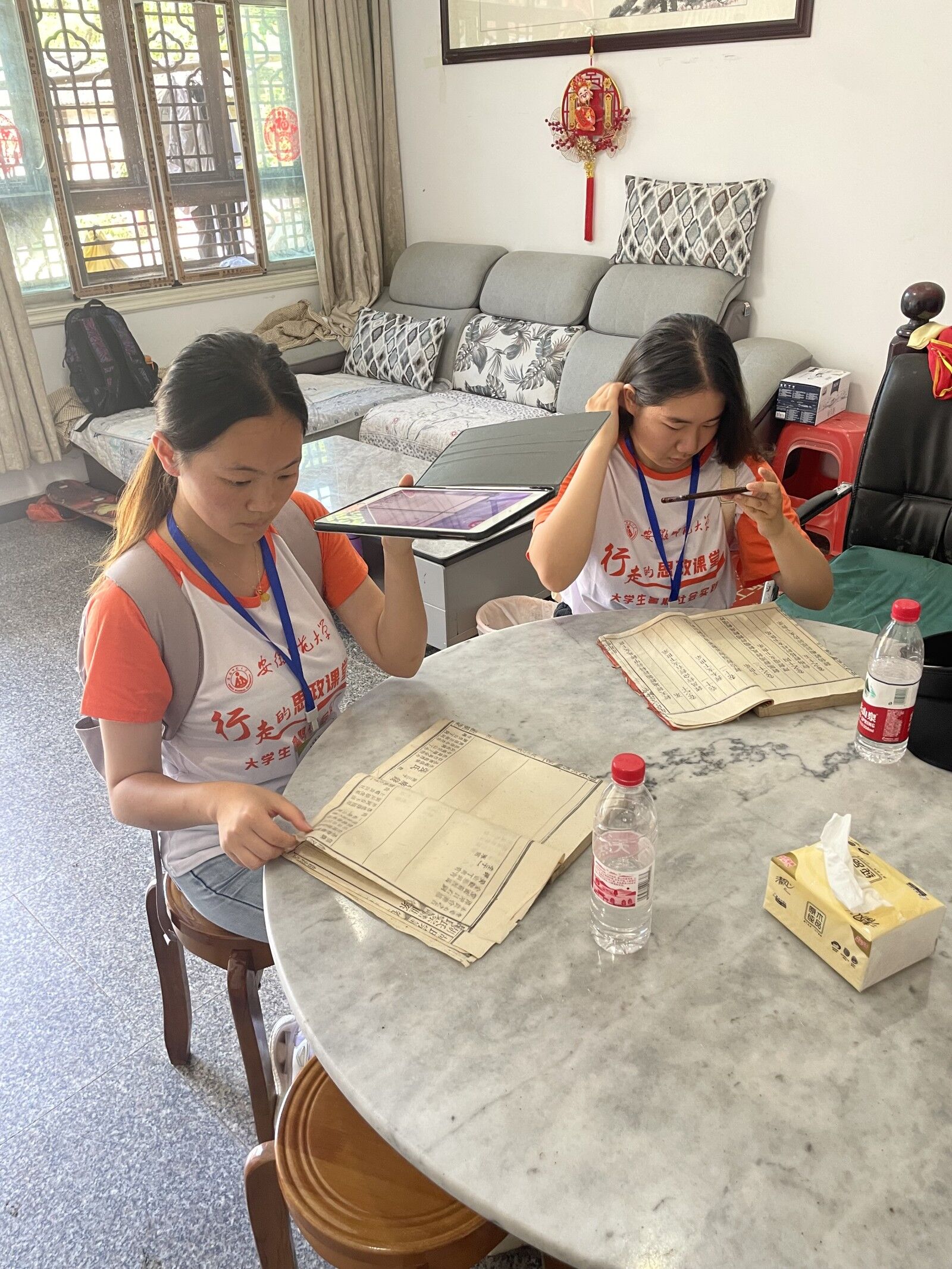 7月4日,余文艺、颜晓涵、郭悦悦、朱巽慧和徐振涛同学跟随陈老师寻访苗石村和龙岗村,宋思雯、程俊、程康、方雨琪同学则留在民宿一起整理殷氏采访录音材料,其余同学在民宿负责宣传积累工作。苗石村、龙岗村之行让成员们深入了解了吴氏和李氏的宗族历史,在去年仅研究金鹰村一隅殷氏宗族的基础上扩大了调研的范围,同学们参观了吴氏、李氏宗祠,也记录下苗石村的古代神话传说,在李氏祠堂了解到堂名的变迁,并收获了李氏宗谱的新材料,访谈结束后,成员们回到民宿回忆并简单总结了有关吴氏、李氏的宗族关系,并在前几次调研中思考和总结各宗族直接的往来联系:主要有姻亲与土地交易关系。当晚,考虑到第二天行程忙碌情况,陈老师将龙潭古寨的有关问题罗列总结出大纲,方便第二天在龙潭古寨进行寻访任务。