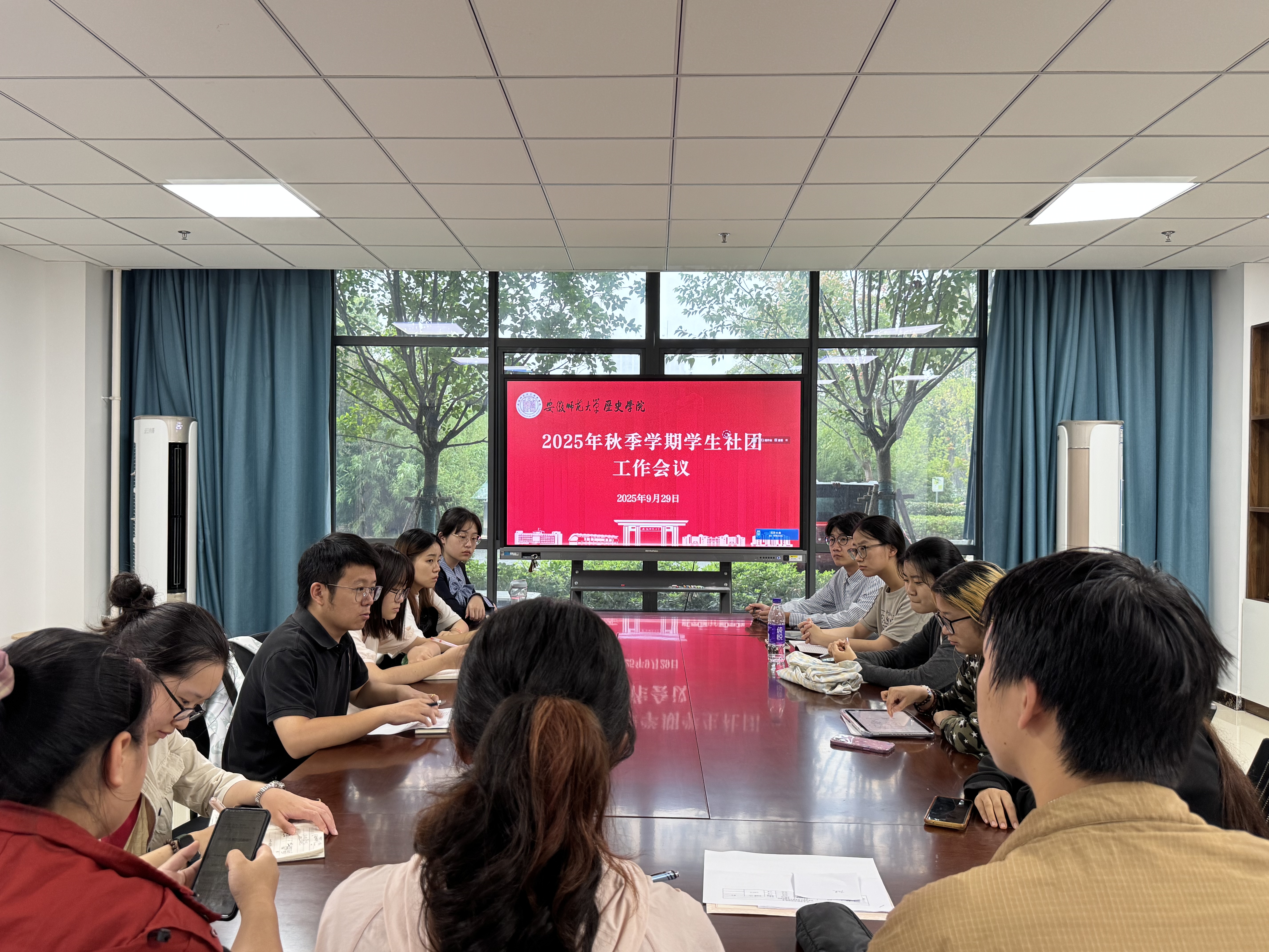 9月29日,历史学院团委在文典楼B106会议室召开2025年秋季学期学生社团工作会议,学院团委书记郭忠尧、社团指导老师胡文新、团委学生副书记李悠然,以及学院各学生社团新一届负责人参会。
