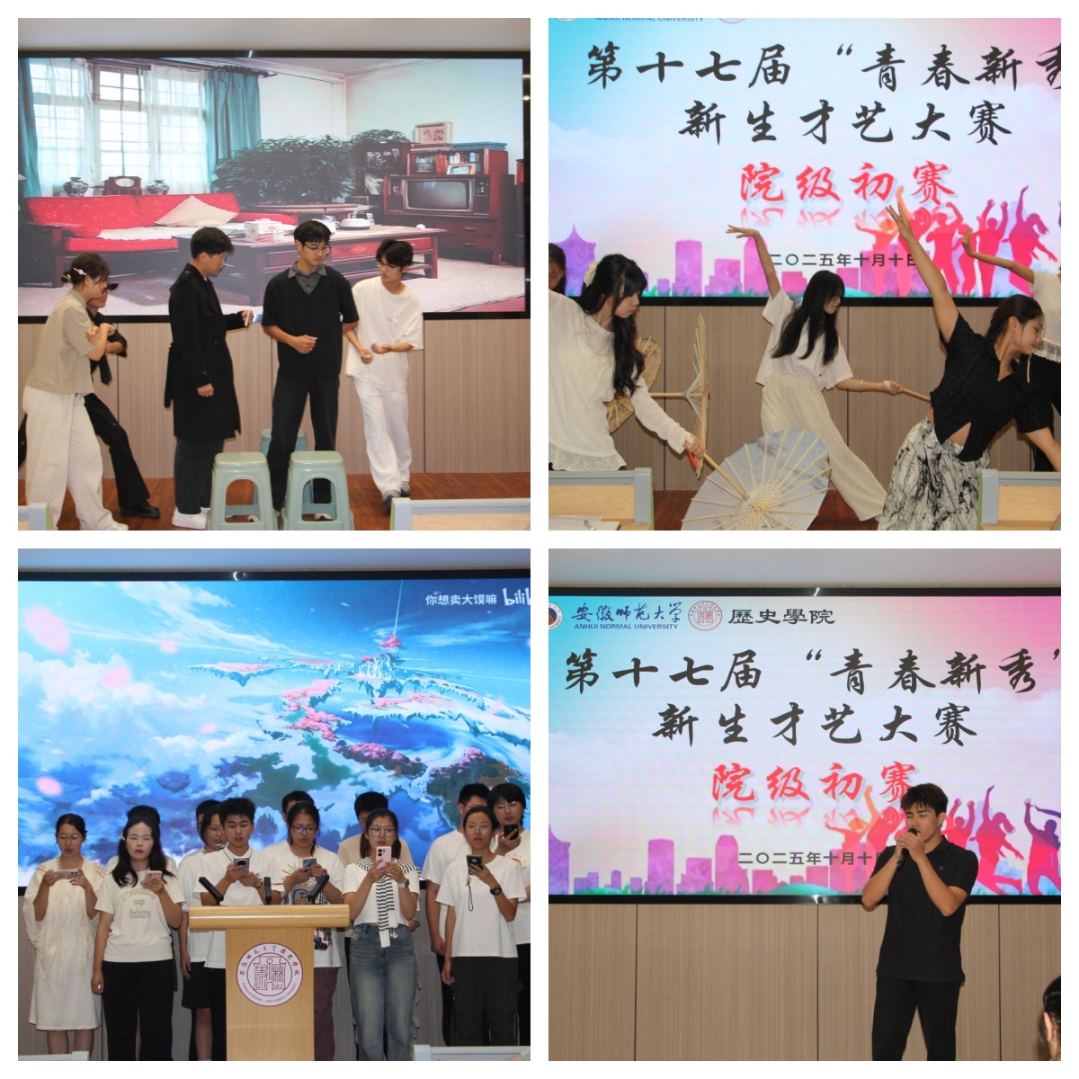 本网讯(图/王紫嫣 文/储美淇)10月10日晚,历史学院于文典楼B108报告厅举办第十七届“青春新秀”新生才艺大赛院级选拔赛,学院新生辅导员韩雪、周佳妮、团委学生副书记李悠然、学生会主席团朱娇娇、吴芸、舒春雨出席并担任评委。