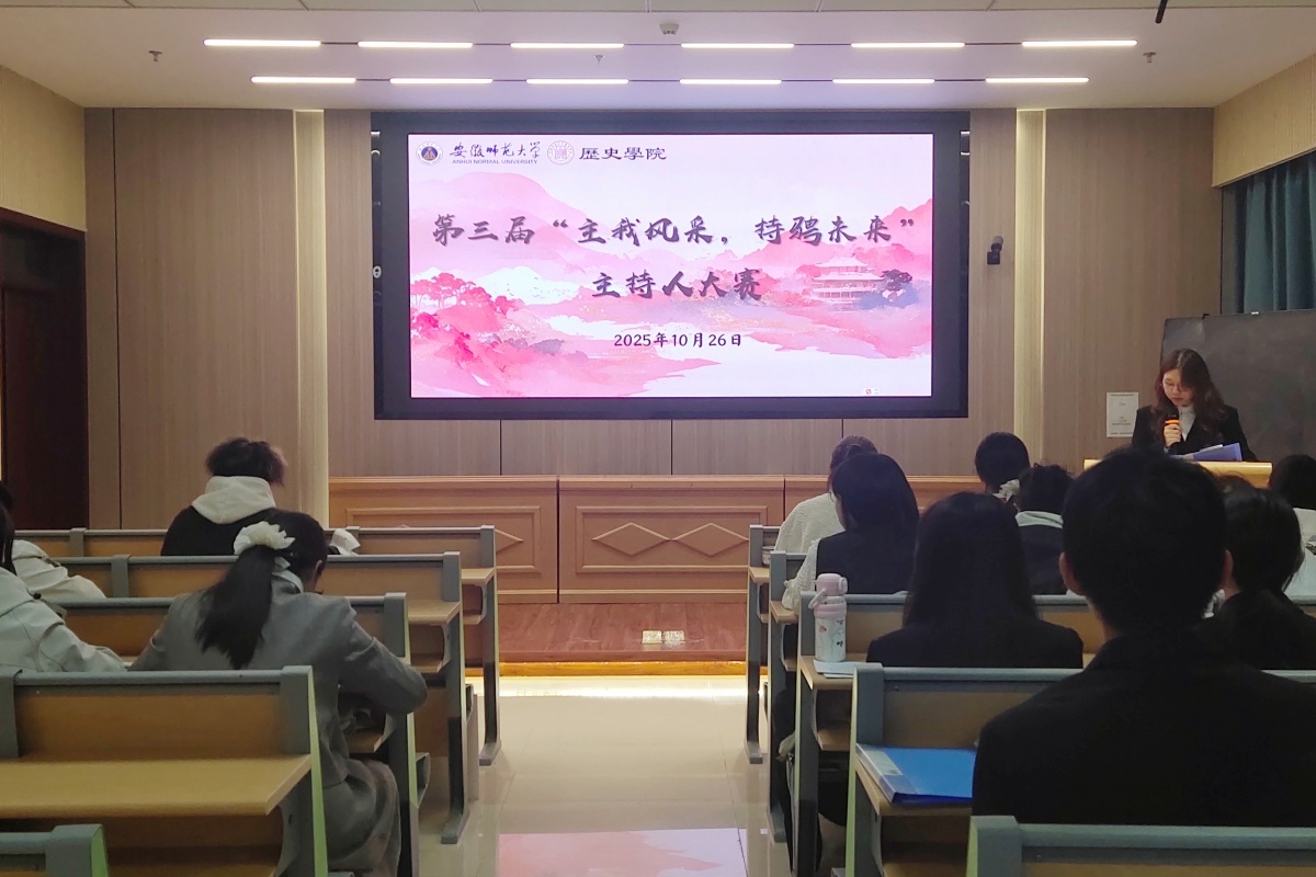 本网讯(图/储美淇 文/谌怡帆)10月26日,历史学院第三届主持人大赛决赛在文典楼B108报告厅举行。学院2025级辅导员周佳妮、团委学生副书记李悠然、学生会主席团成员朱娇娇、吴芸、舒春雨担任评委。