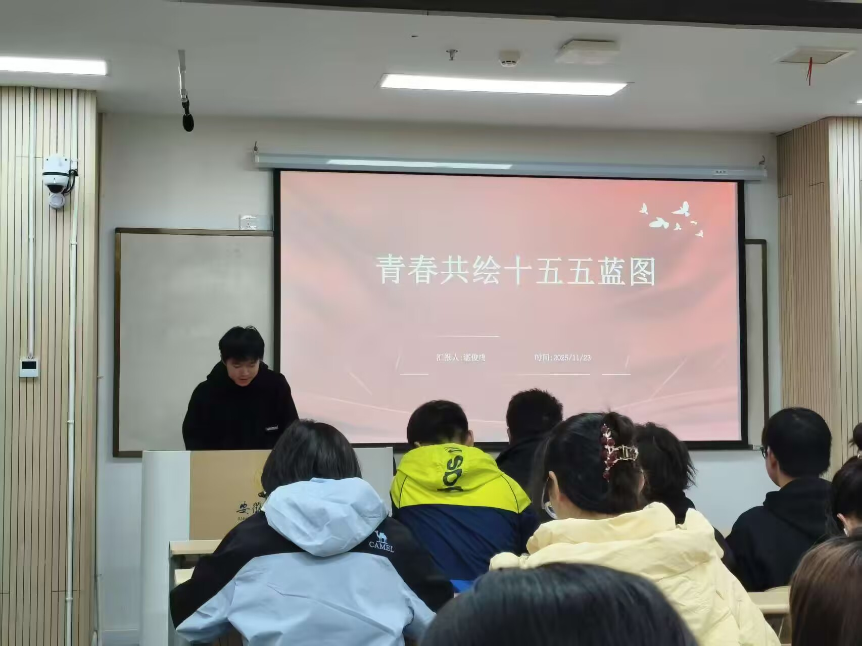 本网讯(图/孟雨歌 文/郭玉莹)2025年11月23日晚,2025级世界史班级以“深入学习二十届四中全会精神”为主题,成功召开团日活动。此次团日活动以深入学习党的二十届四中全会精神为主线,结合“十五五”规划的核心内容,引导同学们站在历史与现实的交汇点思考个人发展与国家命运的联系。团日活动在庄重而热烈的氛围中展开,通过系统梳理全会精神、解读国家发展战略,激发了同学们的使命感和责任感。