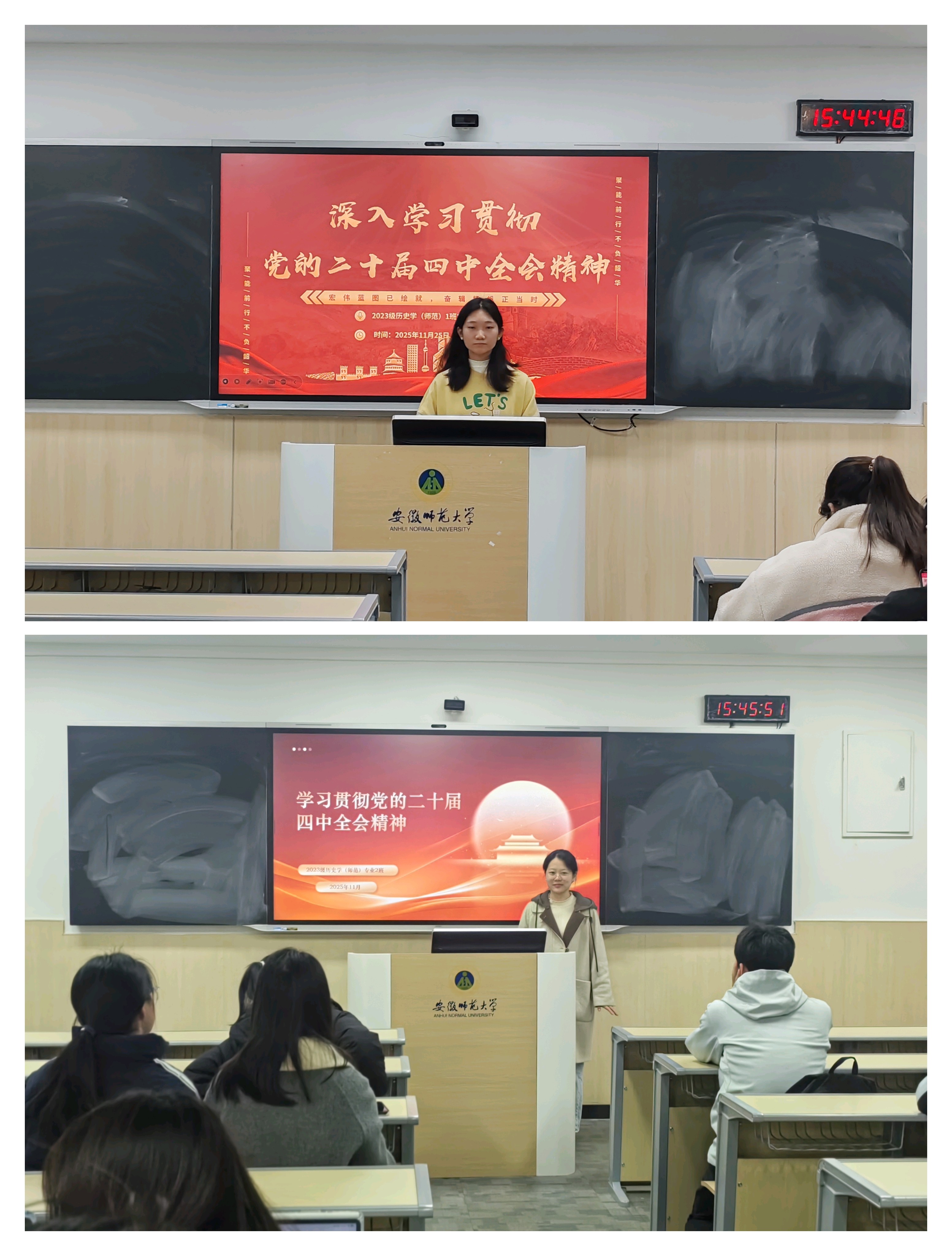 为深刻领会党的二十届四中全会的重要意义,引导广大青年团员准确把握新时代新征程党的使命任务,2023级历史学、世界史专业各班级团支部于11月下旬开展了“深入学习贯彻党的二十届四中全会精神”主题团课。此次活动由各班团支部书记统筹规划,班级全体团员参加。