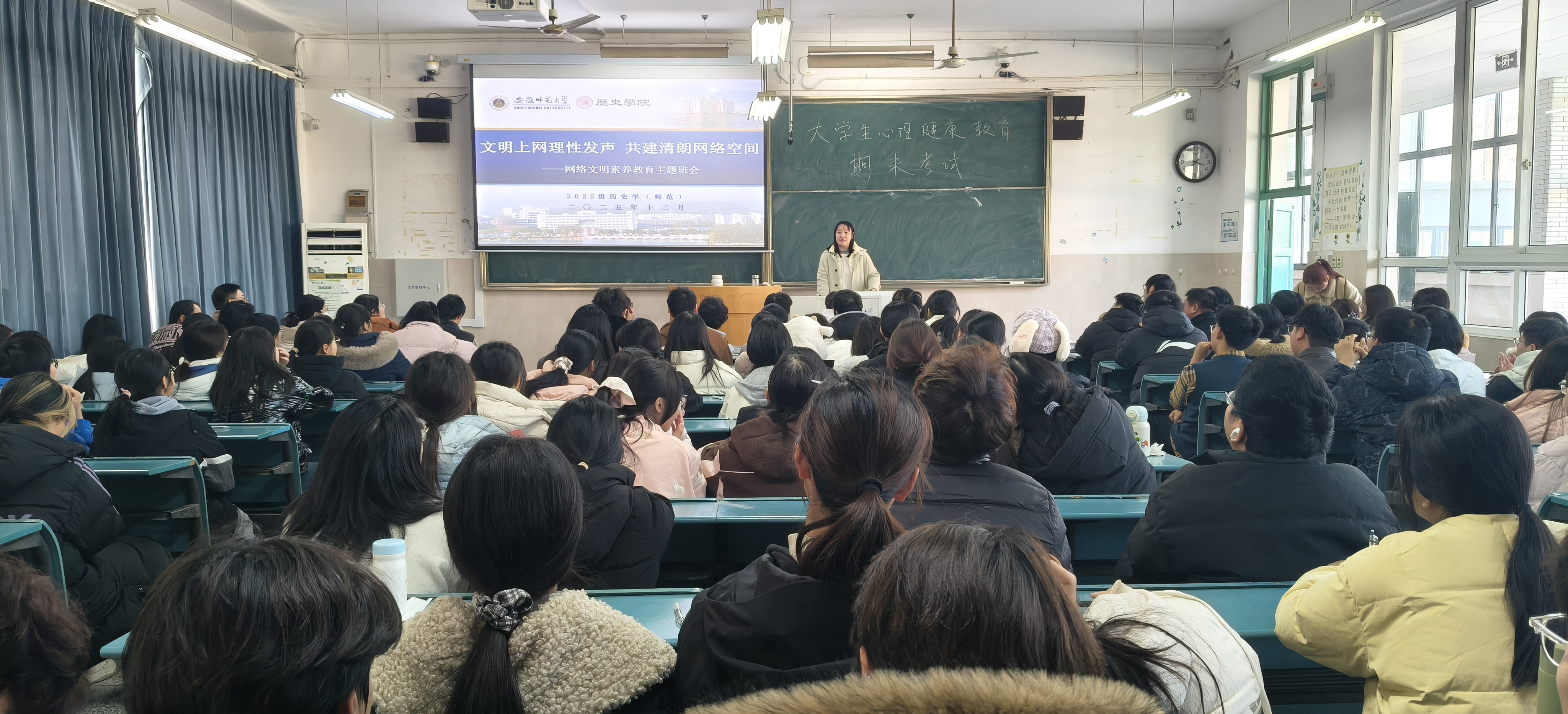为进一步加强网络文明建设,引导学生自觉抵制网络不良信息,营造风清气正的网络环境,12月26日,2025级历史学开展“文明上网 理性发声,共建清朗网络空间”主题班会。