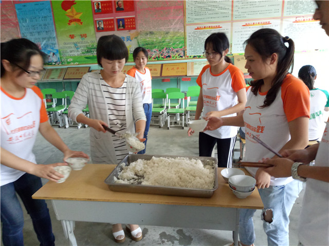 到达学校门口后,大家便看见学校的校长与老师一直在学校门口等待着大家,热情地迎接大家。校长为大家安排了几间干净整洁的屋子,志愿者们安整好自己的床铺后歇息了一段时间,老师们热情的为大家准备了丰盛的晚餐,并亲自给同学们盛饭。舟车劳顿一天以后,志愿者们开心的在一起吃了晚餐。晚餐结束后,为以饱满的状态迎接第二天孩子们的到来,志愿者们进行了第一次工作布置会,详细的讨论如何开展活动,即使只有短短几天也要给孩子们带来大家最诚挚的热情。