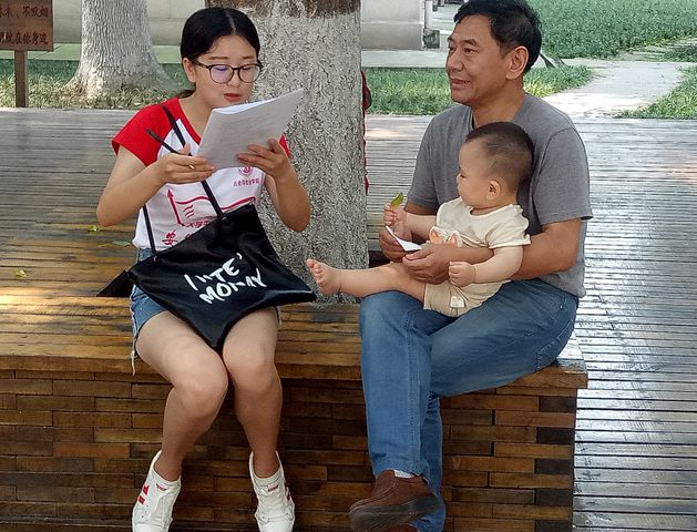 在今天一天的调查中,最令人印象深刻的是一位老爷爷。他穿着汗衫,踢踏着人字拖,手里提着刚买的菜。乍一看与居民区四周三三两两的大妈大爷们没什么区别。当我们向他询问是否可以填写问卷时,他热情地回应了我们。在交谈中我们得知,这位老爷爷竟是他那个年代的研究生。在他所填写的问卷中,我们也看出他的观念与一般爷爷奶奶辈的教育思想不太相同,有着较为先进的教育理念。