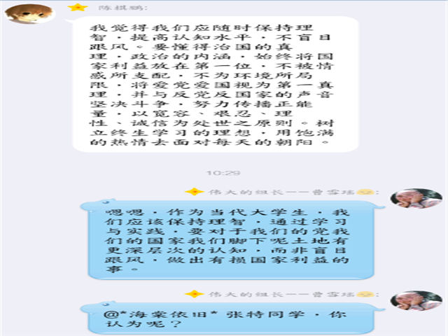 本网讯(2015级历史学 汪章靓)为积极响应共青团 “学习习近平总书记讲话 做合格共青团员”的号召,以增强历史班团员的先进性和光荣感。我班团支部针对“一学一做”讨论实践课程做了详实的筹划准备,利用团课、组织生活会、报告会、线上讨论、观剧征文等生动活泼的形式,多措并举开展本次团日活动。