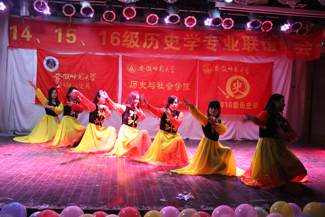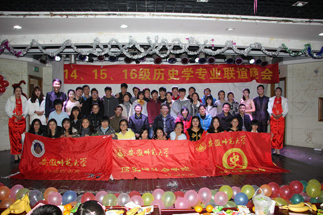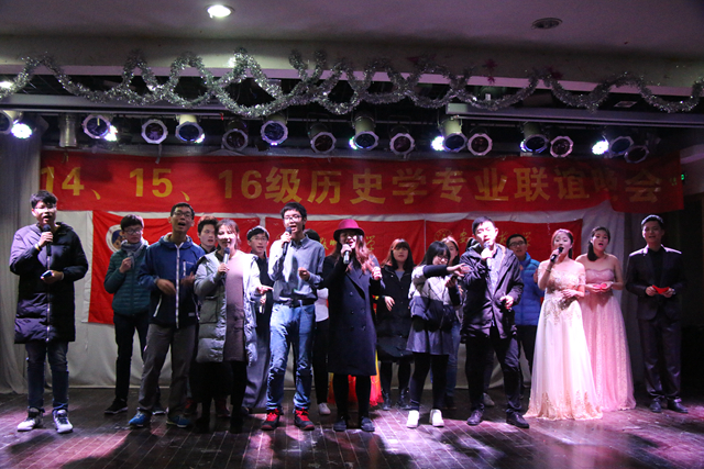 本网讯 (15历史 盛雨馨 16历史 肖舞红)为了让16级历史学新生更快地适应大学生活,加强不同年级历史学专业的联系和交流,14、15、16级历史学于11月26日晚在校团委多功能厅举办了专业联谊晚会。院党委副书记胡悦超,解光云、傅新球两位教授,王彦章、徐尚平两位班主任,15级辅导员金捷,16级辅导员杨静,院社团指导老师应邀出席,参加晚会的还有三个年级的历史学同学们。