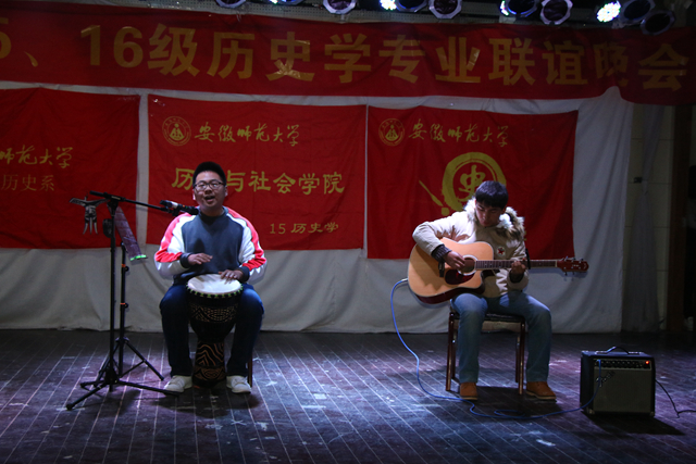 28日晚7时,晚会在16历史周维文同学带来的一种新型乐器launchpad的演奏中拉开帷幕。在表演正式开始之前,投影仪上“这不是电磁炉,这是一种乐器”的诙谐幽默的字幕就调动了师生们的兴趣。正式演出时,lanchpad新颖的形式和绚丽的效果让在场的师生们都惊叹不已。开场舞串烧嗨翻全场,让师生们的激情饱满。在之后的节目中,15历史的艾力弹奏吉他、吴毓林打鼓并吹奏口风琴,合作的一首《南方姑娘》婉转动听,三种乐器与美妙的歌声交融,师生们都听得如痴如醉。15历史的张学智和朱晓敏则以欢笑带动气氛,带来了相声《我的爱好》,展现了独特的地方方言的魅力,表演也开放欢脱,颇具特色,引的现场观众都捧腹大笑。16历史的同学结合专业特色,表演了历史剧《孔雀东南飞》,从史实出发,又加入了一些舞台表演特色,演员精湛的演技搏得了观众的阵阵掌声。16级同学表演的舞蹈《美妙的身姿》,充满了维吾尔族的民族特色,颇具异域风情,灵动美妙。在击鼓传花、摸箱子等游戏环节,主持人邀请了师生们一同参加,平日里执笔讲课的老师也展现出了自己亲和开朗的一面,和谐热闹的气氛感染了每一位观众,将整场晚会推向了高潮。最后,由三个年级的班委共同演唱《相亲相爱》,深深体现了“历史一家亲”的主题,加深了三个年级之间的情谊,温暖收场。15历史辅导员金捷老师最后对晚会进行总结,他希望16级新生能度过四年快乐且充实的大学时光,希望三个年级的同学能够互相帮助扶持,希望历史学能够蓬勃发展,一脉相承。这也是他作为辅导员的心愿所在。