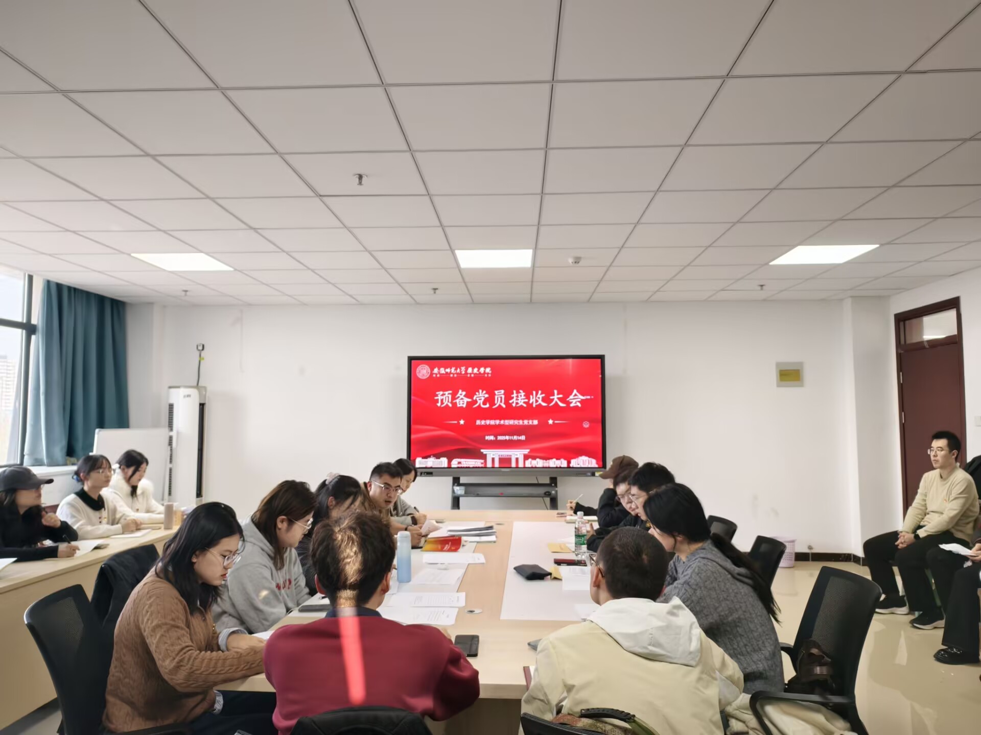 本网讯(历史学院 付娆)2025年11月14日下午,历史学院学术型研究生党支部在文典楼B408教室召开预备党员接收大会。会议由支部书记吕永鑫主持。会议主要讨论林钧财、徐周杰、季诗雨3名发展对象为中共预备党员的问题。